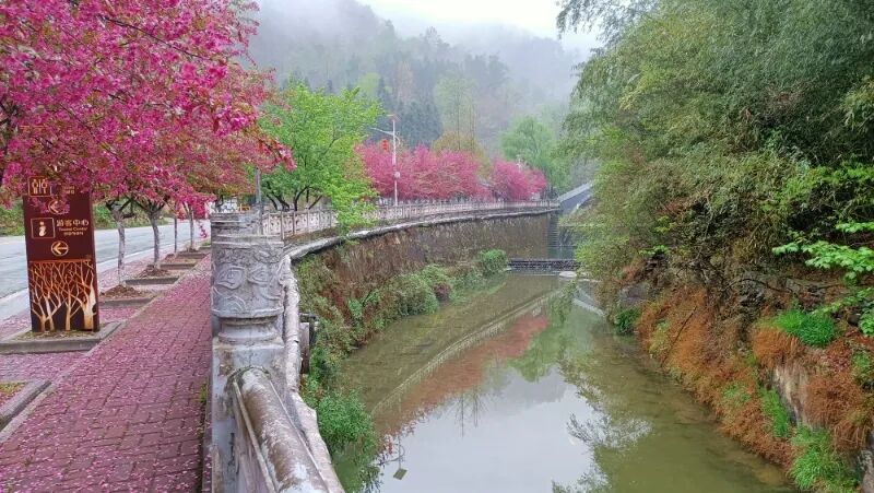 他们依着山势顺着水流的情况,种植茶叶并且培育菌类,把党建和农旅发展紧密结合起来,村支部发挥带头作用,企业负责搭建平台,合作社积极牵线搭桥,农户踊跃参与、出力干活,顺着山的形态,四百亩的茶园伸展开来,在茶垄中间修建了步道,步道旁边密密麻麻地栽种着樱花、桃花,就是为了让人走入其中,沉醉在这美景之中。